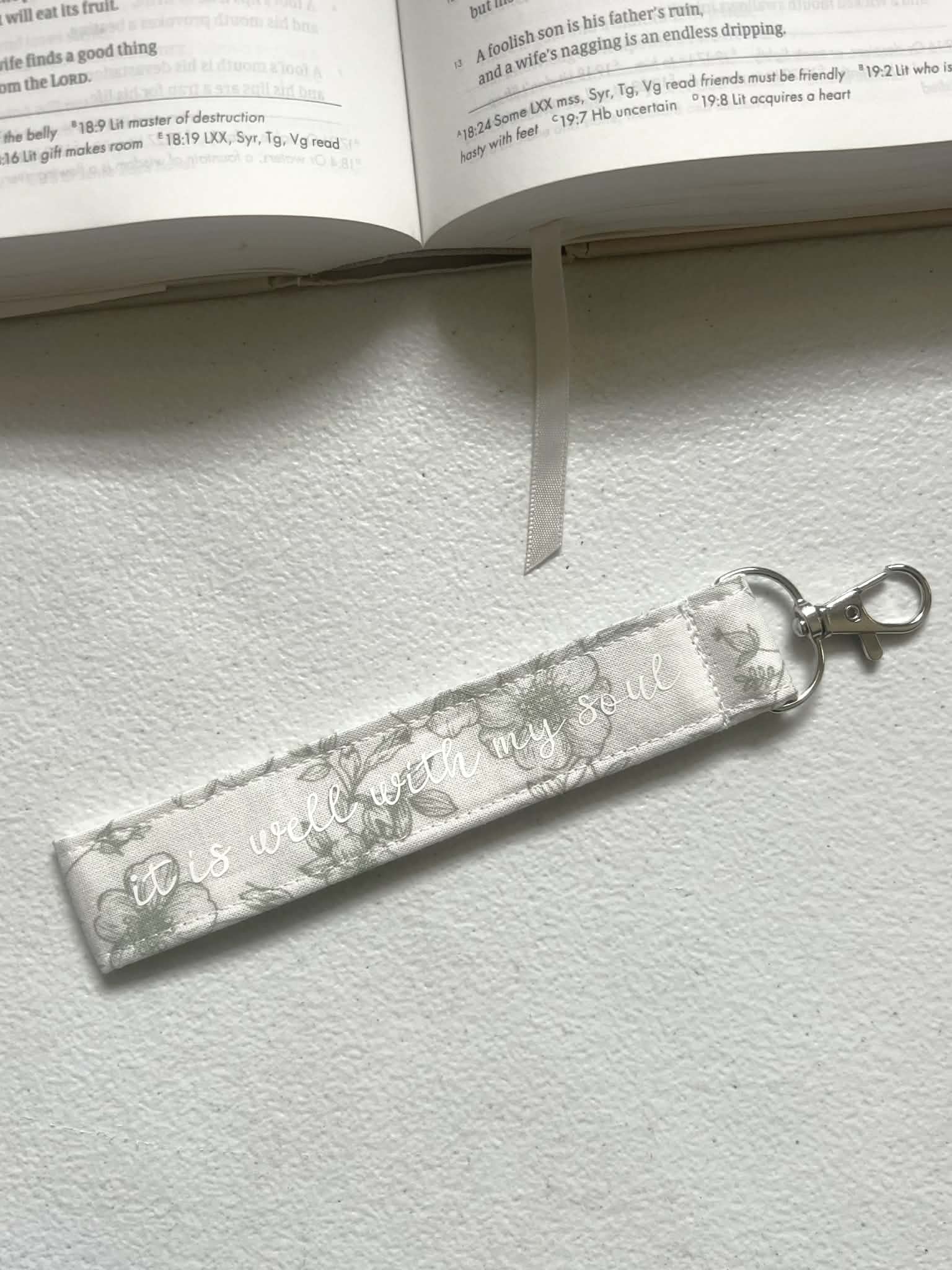 Add a wristlet to your keys for a cute chic look! These wristlets will match endless accessories and remind you that wherever you are, God is with you! All handmade by Rooted Co.